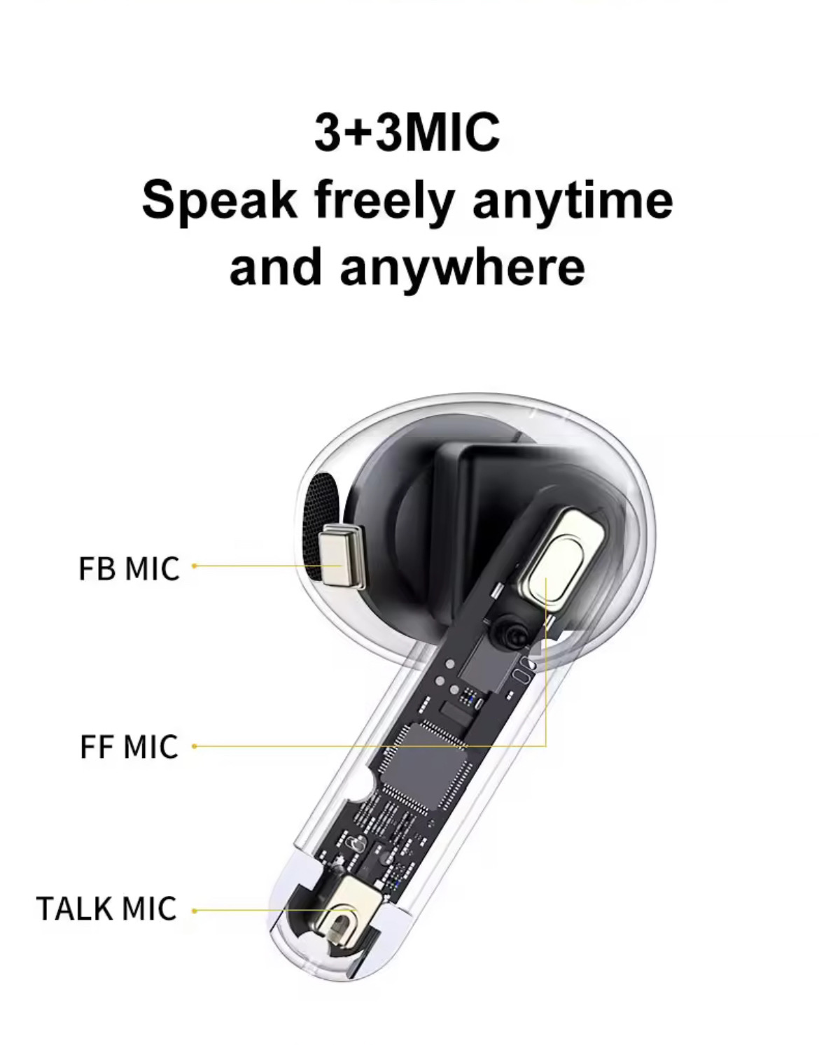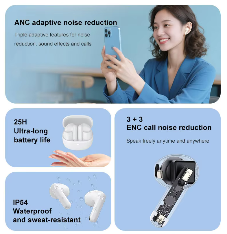 ✅ มาพร้อมไมค์ 6 ตัว (ข้างละ 3 ตัว) Hybrid ANC ระบบตัดเสียงรบกวนในขณะฟังเพลง (40 dB) และ Transparency Mode เปิดรับเสียงจากภายนอกได้สมจริงกว่า
