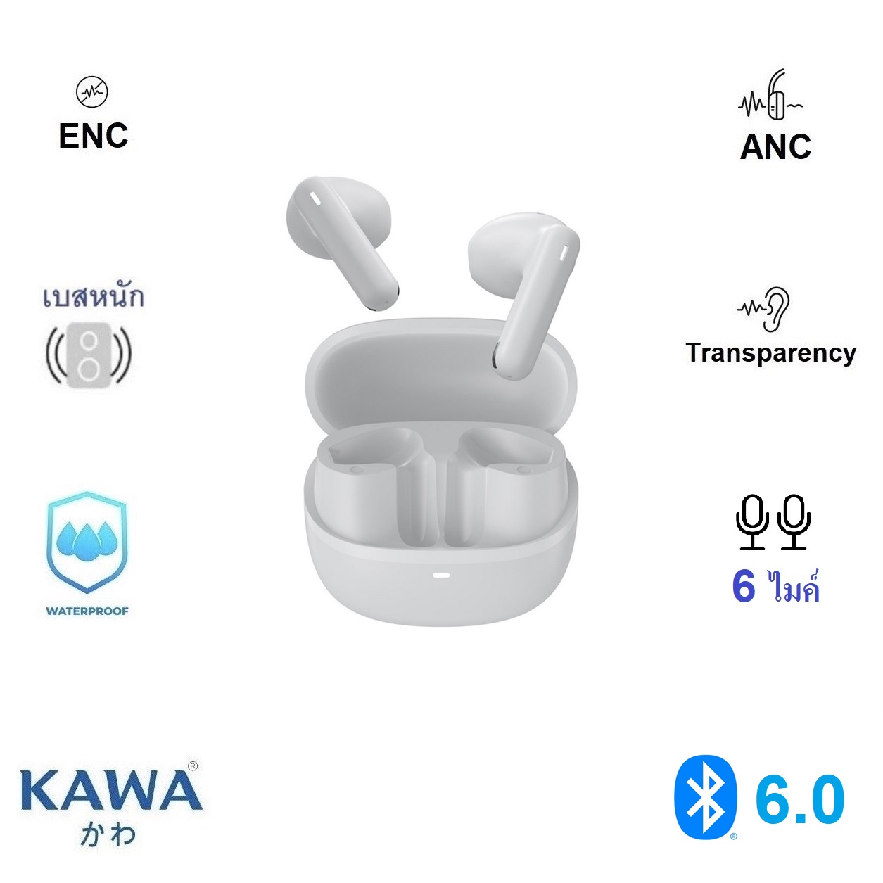 ✅ มีไมค์ 6 ตัว (ข้างละ 3 ตัว) คุยโทรศัพท์ชัดเจนกว่าเดิม มาพร้อมระบบลดเสียงรบกวนในขณะคุยโทรศัพท์ (Environmental Noise Cancelling หรือ ENC)
